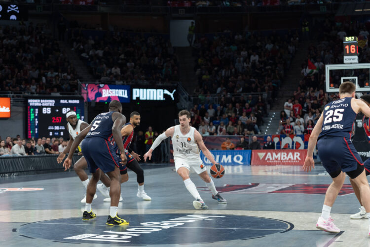 Baskonia je u neizvjesnoj završnici svladala Real Madrid, prekinuvši tako niz pobjeda madridske momčadi. Ključni igrači domaćih bili su Timothé Luwawu-Cabarrot, Mamadi Diakite i Coby Simmons, koji su nosili napad tijekom cijelog susreta. Real je uzvratio preko Facunda Campazza i Marija Hezonje, ali je u završnici ostao bez rješenja protiv agresivne obrane Baskonije. U posljednjim minutama Simmons je preuzeo odgovornost i pogodio ključne šuteve, dok je Hezonja promašio pokušaj za vodstvo i potom skrivio odlučujući prekršaj. Baskonia je tako upisala četvrtu uzastopnu pobjedu u svim natjecanjima.