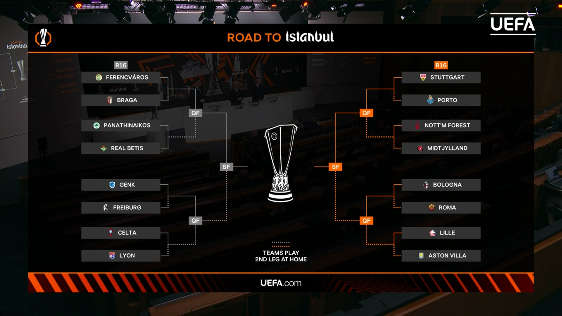 Lyon, koji je uz Aston Villu bio najbolja momčad prvog dijela, igra protiv Celte, Panathinaikos protiv Betisa, Ferencvaros protiv Brage, dok će Nottingham i Midtjylland imati reprizu nakon što je jesenas danski sastav slavio u Engleskoj 3:2.