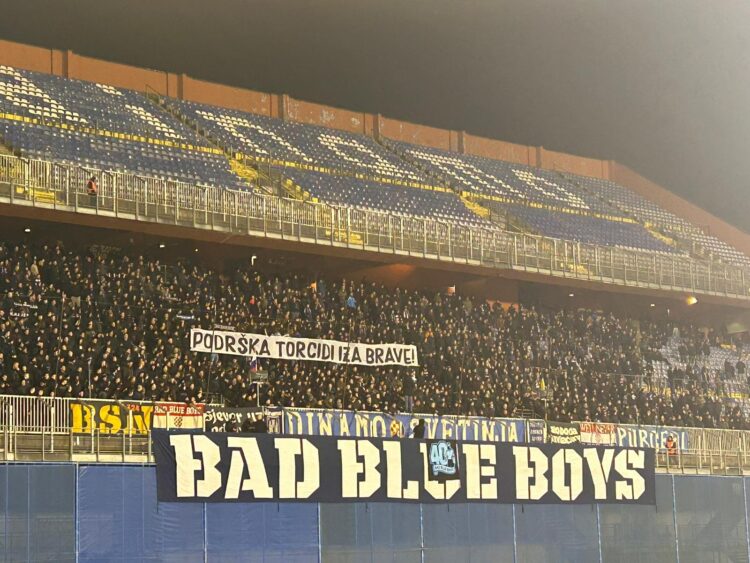 Na transparentu je stajala poruka: “Podrška Torcidi iza brave!”, a u istom trenutku s tribina su se orili stihovi pjesme “Hrvatska mati me rodila” u izvedbi Tomislava Brajše.