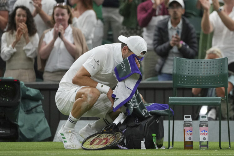 Tridesetčetverogodišnji Bugarin, koji je tri mjeseca bio izvan terena zbog ozljede prsnog mišića, vratio se pobjedom u ponedjeljak protiv Giovannija Mpetshija Perricarda. No, uoči svog 12. međusobnog susreta s Medvedevom (omjer 8-3 za Medvedeva), Dimitrov je morao odustati zbog ozljede ramena.